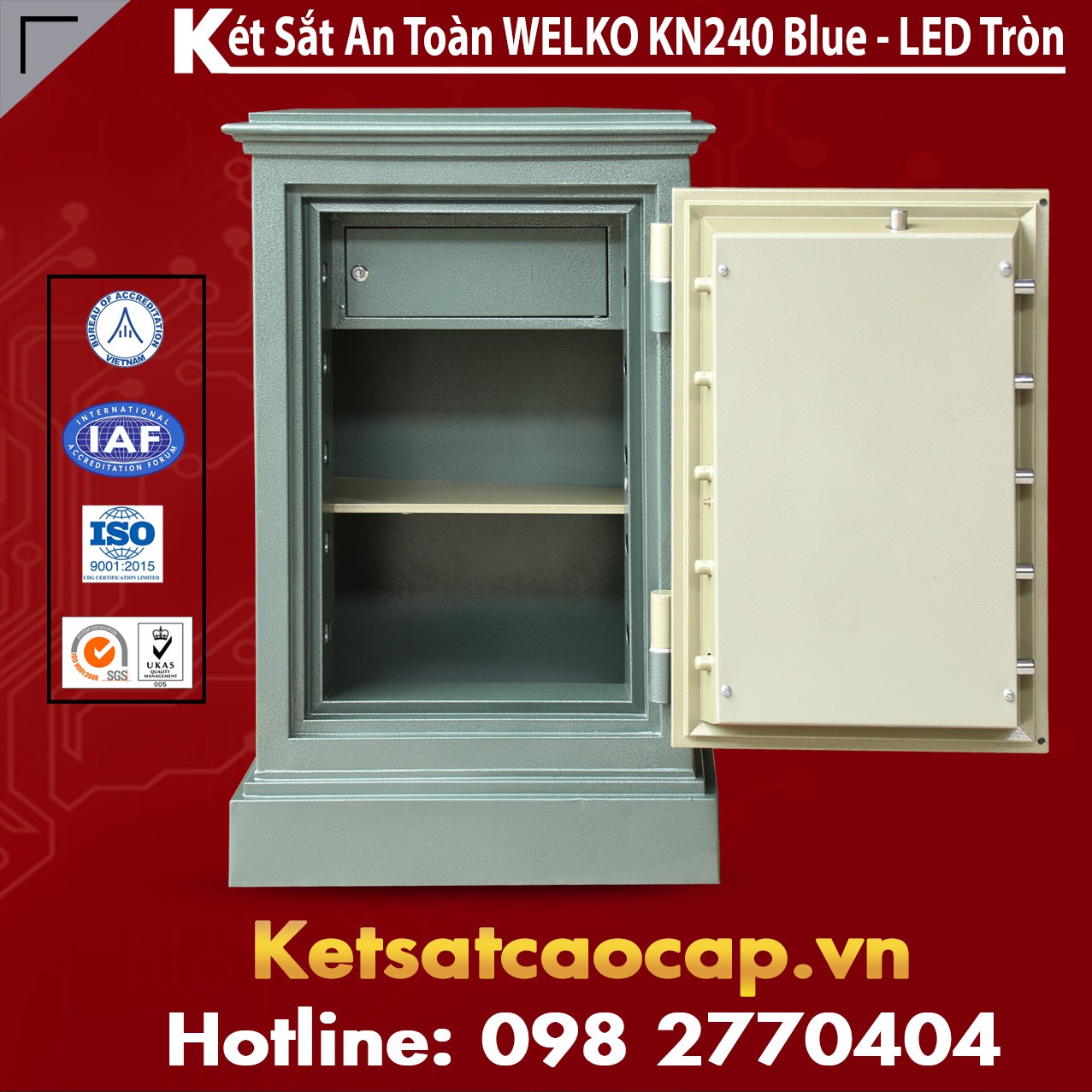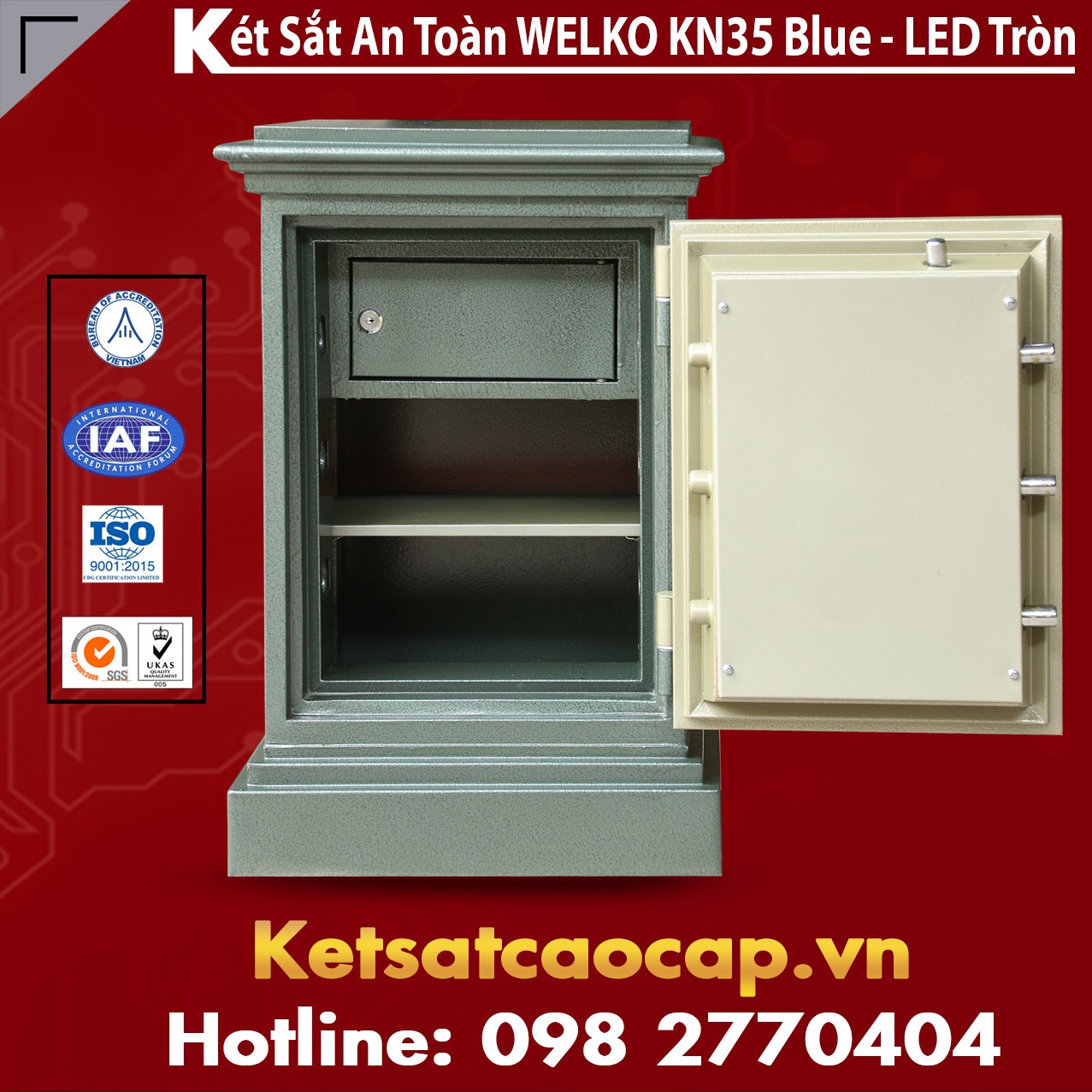 két sắt cỡ lớn KN45 Công Ty két sắt WELKO SAFE xin giới thiệu với quý khách hàng sản phẩm két sắt văn phòng để đáp ứng nhu cầu lưu trữ các tài sản quan trọng con dấu, giấy tờ, tiền bạc, hay các thông tin trong ổ cứng usb... của công ty cần được bảo quản, cất giữ. két sắt cỡ lớn KN45 là két sắt cao cấp với tính năng như chống cháy 1000-1200 độ C, nhập khẩu, nhập khẩu khi xâm phạm trái phép cho tài sản của bạn cỡ lớn tối đa nhất. Hotline: 0982770404