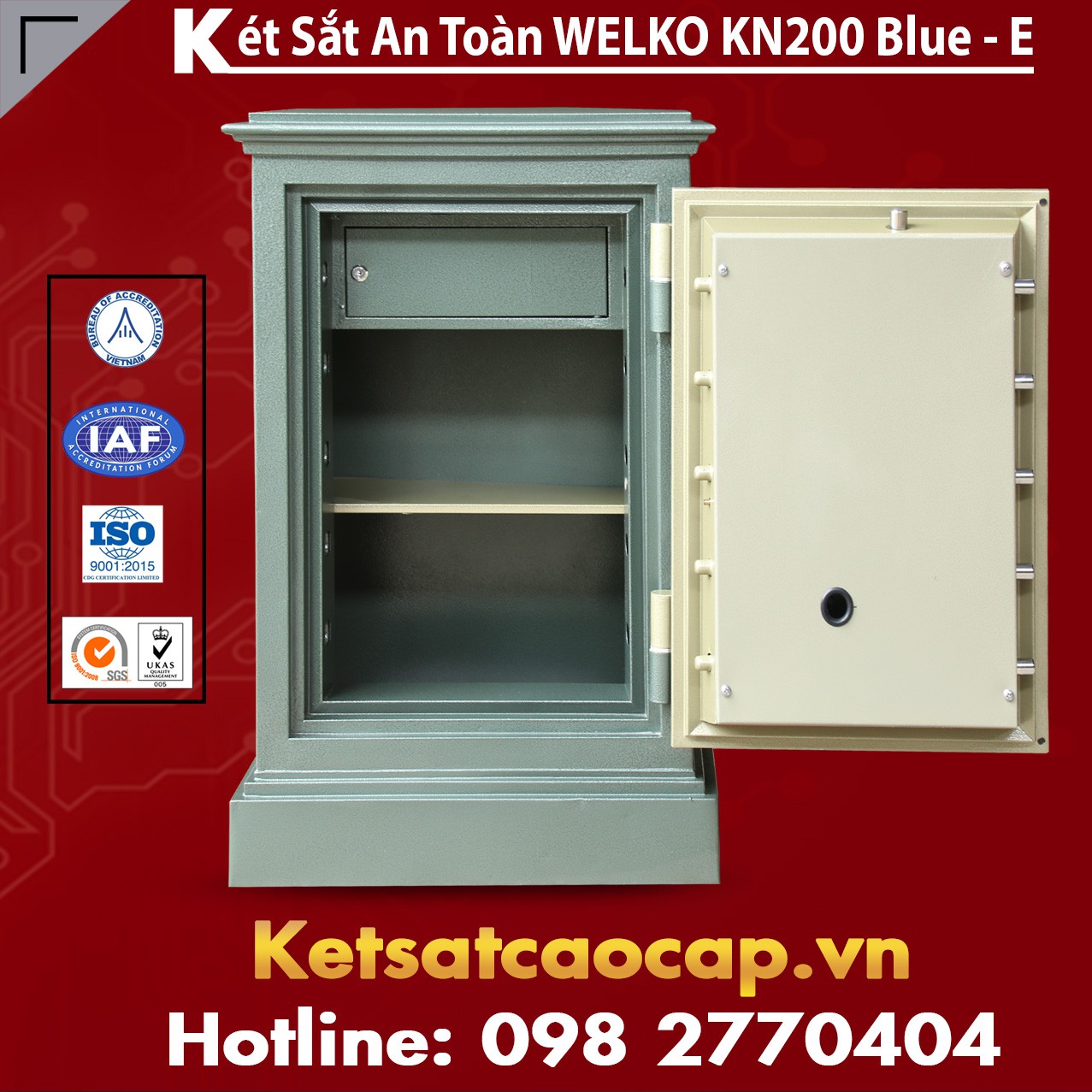 Két sắt chống cháy chống trộm chống khoan phá cắt đục là dòng két sắt đang được bán chạy nhất hiện nay, thuộc sản phẩm két sắt xuất khẩu, két bạc được sản xuất trên đây chuyền công nghệ hiện đại hàng đầu châu á với nguyên liệu nhập khẩu và tiêu chuẩn quốc tế ISO 9001 - 2008 CERTIFICATE NO.: HT 2776.12.17 luôn đảm bảo an toàn – tin cậy – bền bỉ - chống cháy nổ khoan phá.