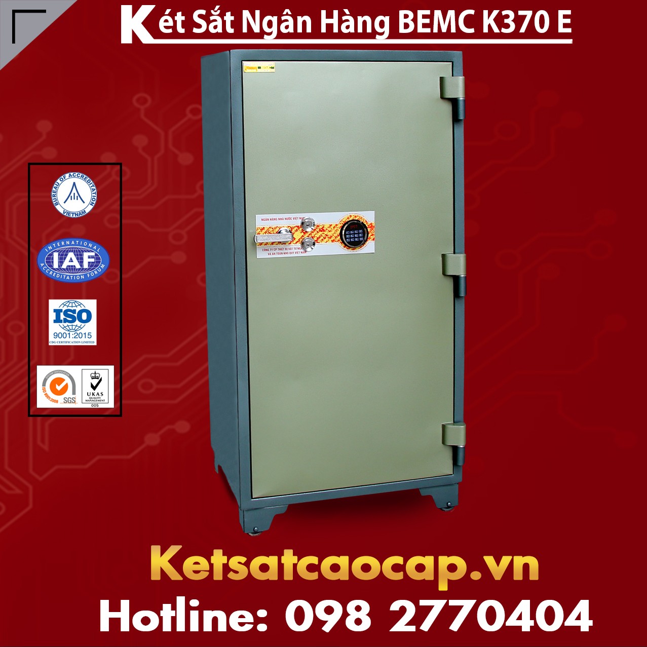 Két Sắt Ngân Hàng BEMC K370E Két Khoá Điện Tử Cho Hệ Thống Ngân Hàng. Két sắt BEMC sản phẩm uy tín chính hãng 100% - Sản xuất trên dây chuyền công nghệ hiện đại tiên tiến của Đức và Hàn Quốc. Thiết kế tiêu chuẩn cho hệ thống ngân hàng - màu sắc sang trọng, trang nhã - Hàng chất lượng cao qua kiểm duyệt vô cùng chặt chẽ - Chính sách bảo hành dài hạn- Miễn phí vận chuyển toàn quốc - Ưu đãi cực lớn lên đến 50% - Hãy nhanh tay nhấc máy liện hệ với chúng tôi qua tổng đài Hotline 24/7: 0982770404.