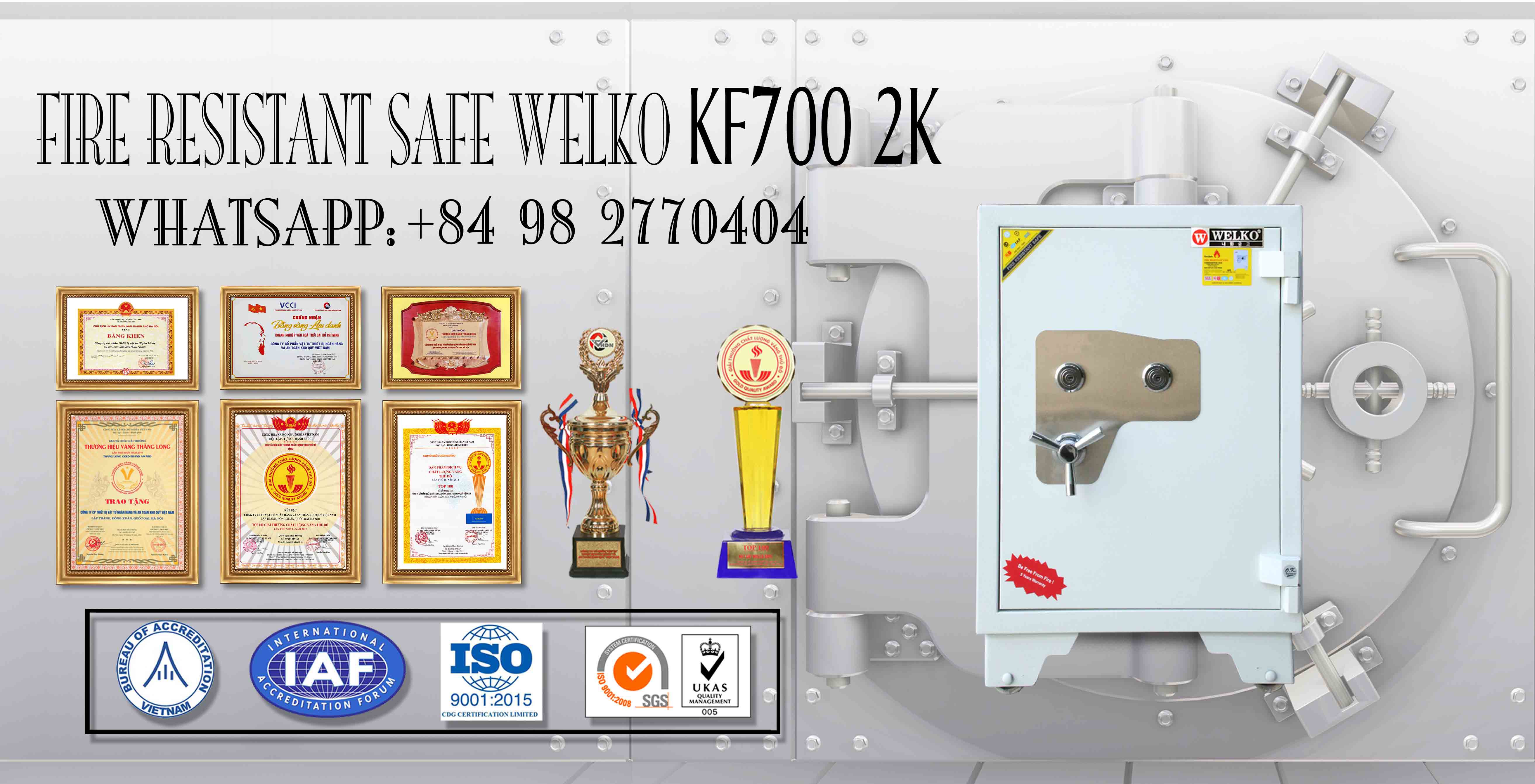Két Sắt Siêu Thị WELKO KF700 - 2K là dòng sản phẩm két sắt sử dụng khoá điện tử cao cấp mở bằng cách bấm BURGLARY FIRE SAFES mật mã bí mật kết hợp với khoá chìa chống sao chép tăng khả năng bảo vệ, và tay cầm.Két Sắt Giá Rẻ Giúp bảo mật đảm bảo tài sản là hệ thống khoá an toàn cao là kết quả của sự sáng tạo từ một dạng vật chất cứng có khả năng chống trộm đập khoan phá tại một ngưỡng va đập mạnh nhất định, bảo vệ tối đa tài sản khách hàng. BURGLARY FIRE SAFES
