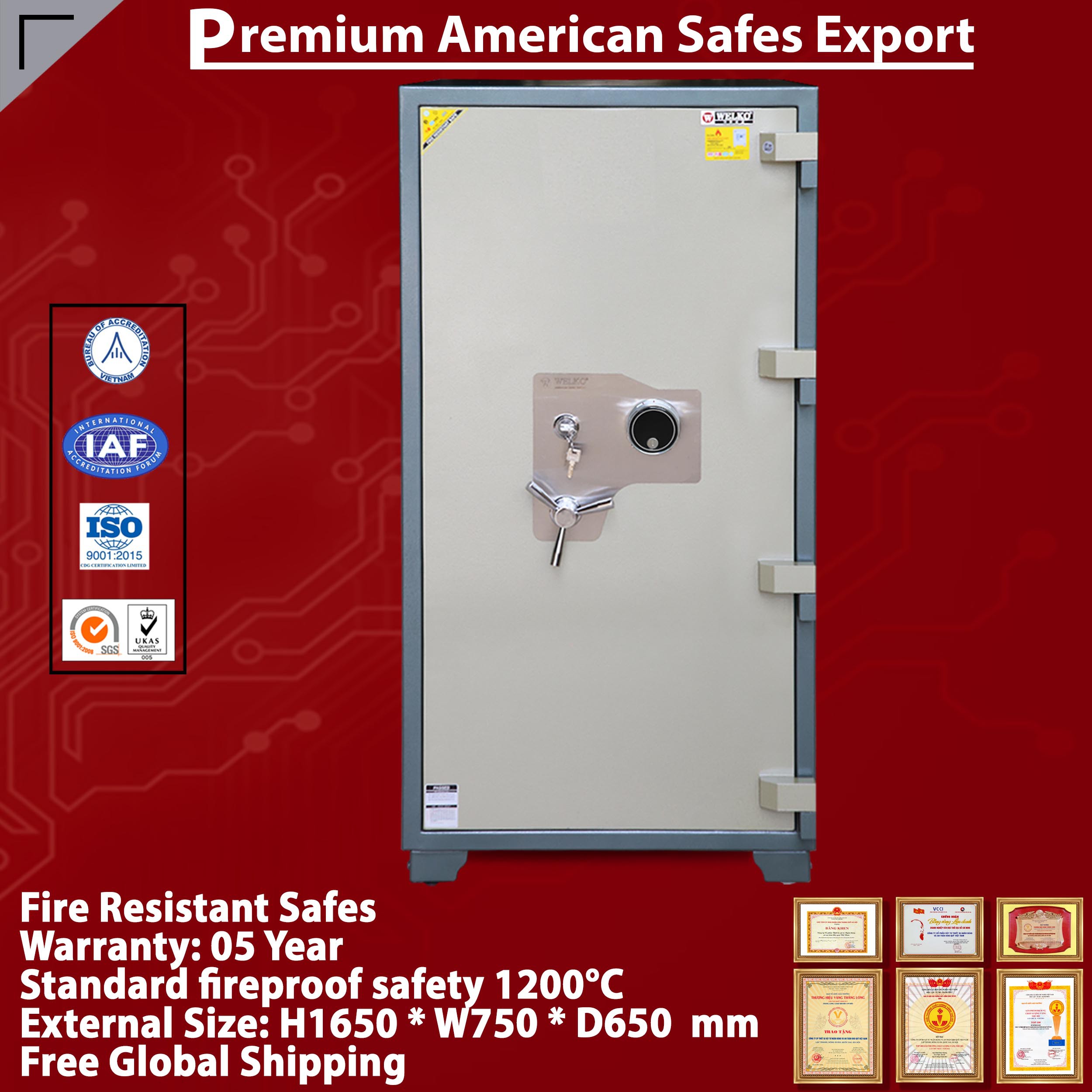 Premium Safe Box WELKO US1650 DK - WELKO Safes is a Prestigious Brand Over 30 Years of Experience. The company always puts credibility first. Manufactory Recruiting 1st level agents to supply Safes With Many Top Famous Brands In Vietnam And In The World. Great Deals when shopping for WELKO Safes. Guaranteed 100% Original Price, Extreme SOCK Price + We Only Sell At Factory Original Price + Free Delivery and Installation. Manufacturing Factory Recruiting level 1 agent to supply Safes. Support Dedicated and Thoughtful Consulting 24/24. Pay At Home or at Work. Professional attentive service, Guaranteed Delivery Schedule. Genuine WELKO Safes Warranty 03 years At the place of use, Lifetime Product Maintenance.